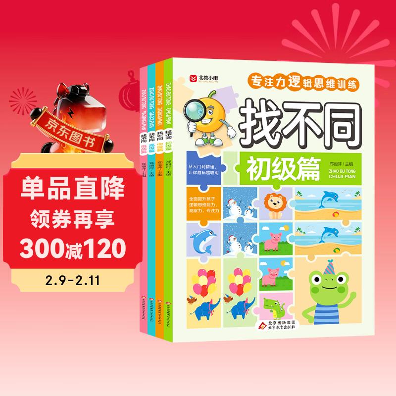 找不同(全4册)专注力训练游戏书 彩图大字版 初级篇 中级篇 高级篇 挑战篇 儿童青少年专注力逻辑思维训练游戏书籍 7-10岁儿童读物课外书课外读物 儿童年货节送礼