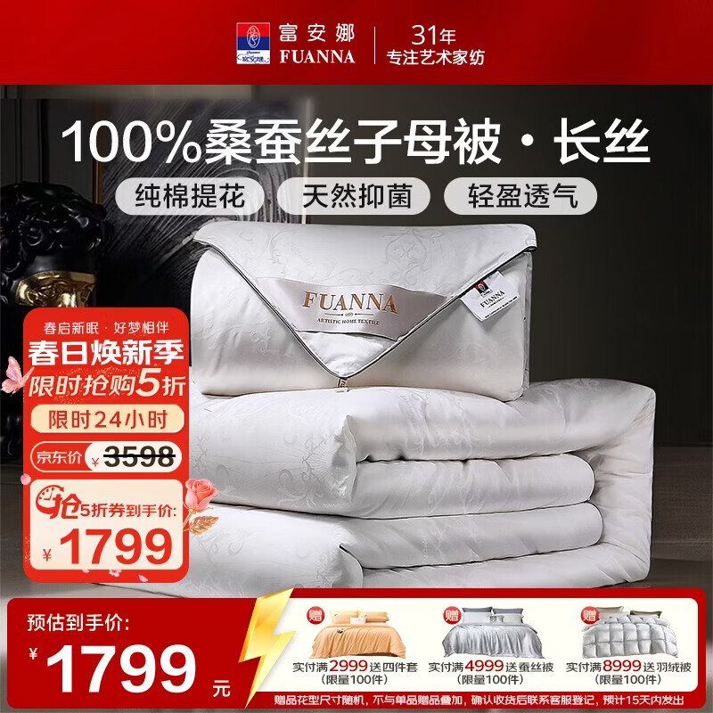 富安娜蚕丝被100%桑蚕丝冬被子母被冬季加厚芯 双人11.4斤230*229cm