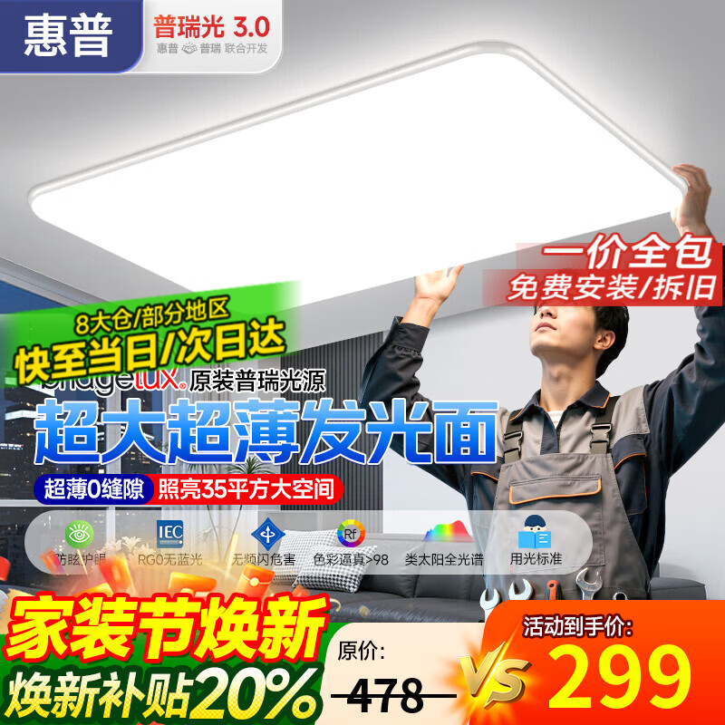 惠普吸顶灯超薄客厅吸顶灯现代简约大厅主灯餐厅卧室书房全屋灯具套餐 原装普瑞-大客厅灯150W-调光