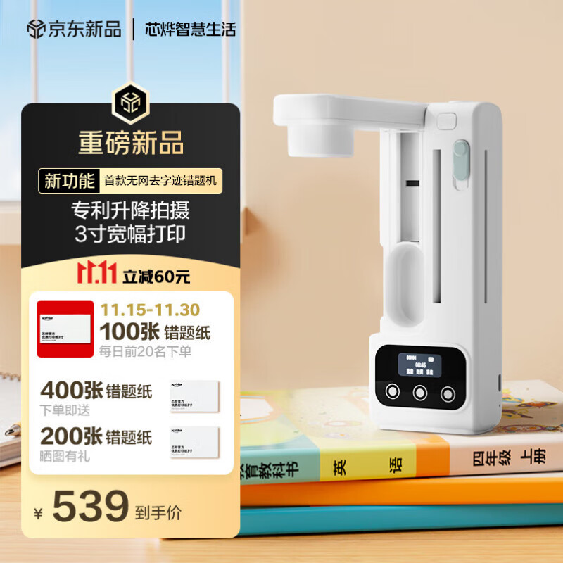 芯烨智慧生活A01错题机打印机无需手机初中高中生即拍即打 无需网络可去除笔迹可粘贴作业整理神器便携家用