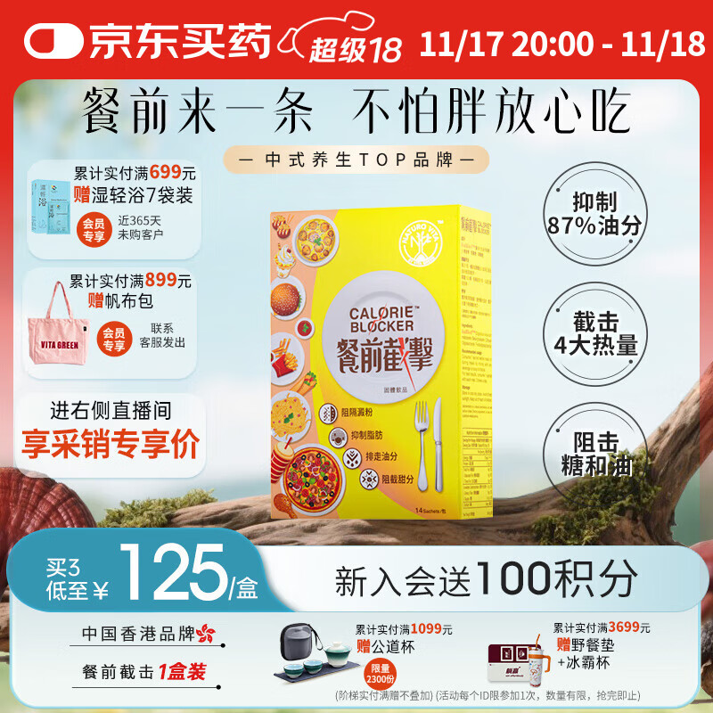 维特健灵 餐前截击14包减肥油脂碳水阻断代餐大餐救星嗨吃身体肥重