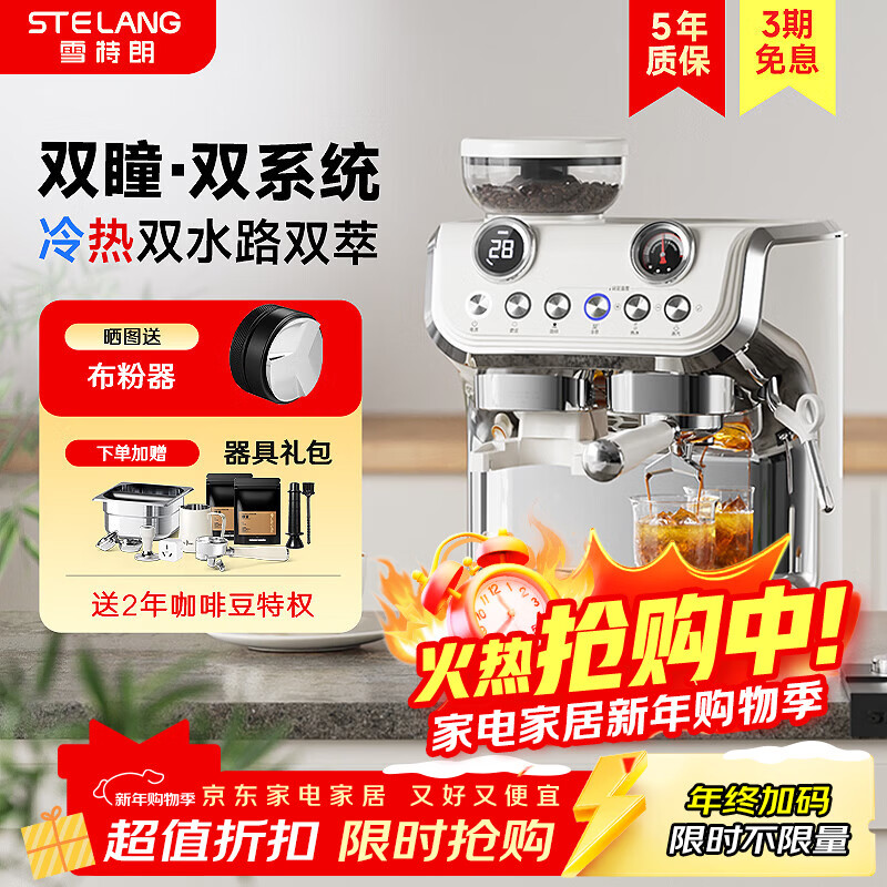 雪特朗【新年礼物】517ED双锅炉系统半自动咖啡机家用研磨一体机意式美式咖啡机冷热双萃