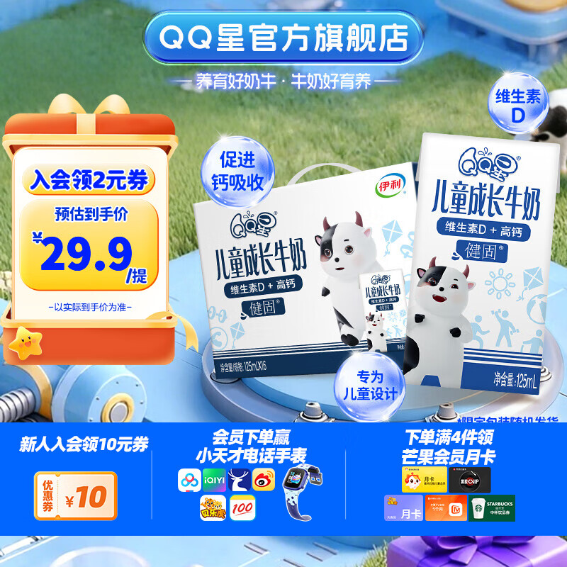 QQ星伊利儿童成长牛奶健固型125ml*16盒/箱 高钙儿童牛奶 礼盒装
