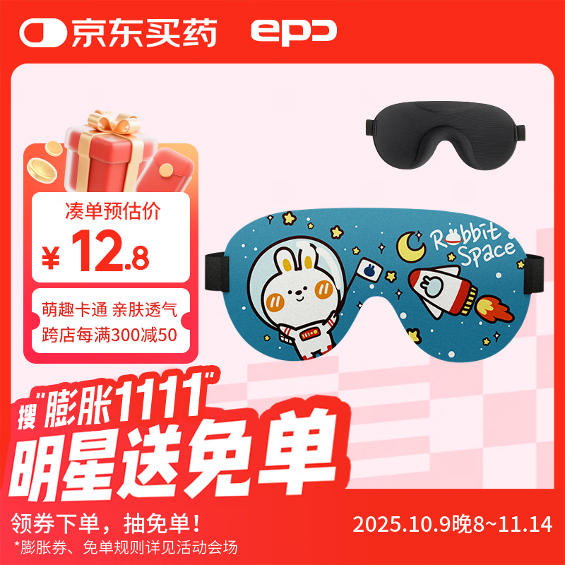 epc 儿童眼罩立体睡眠遮光小学生午睡男女孩透气卡通睡觉 太空飞行兔