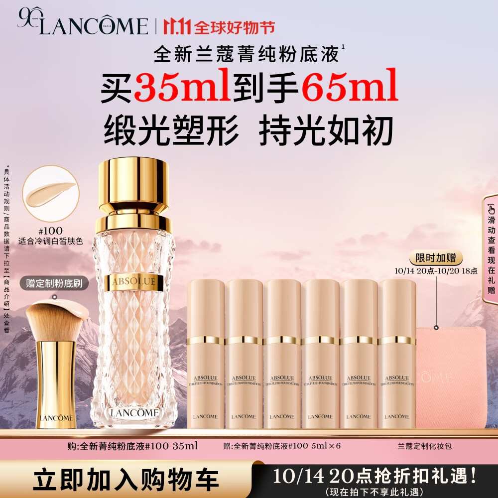兰蔻菁纯粉底液#100细腻服帖滋润干皮高光底妆化妆礼盒生日礼物送女友