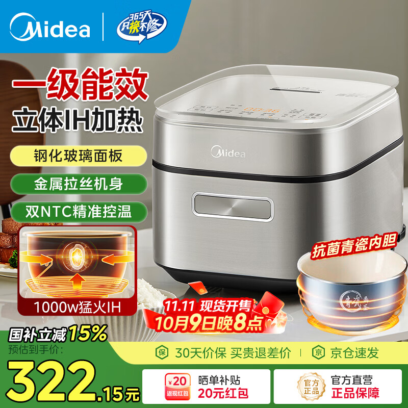 美的IH加热一级能效电饭煲电饭锅1-2-3人用 陶瓷内胆家用智能定时迷你电饭煲3升快速饭柴火饭电煮饭煲 【一级能效 IH加热】25年新品 3L