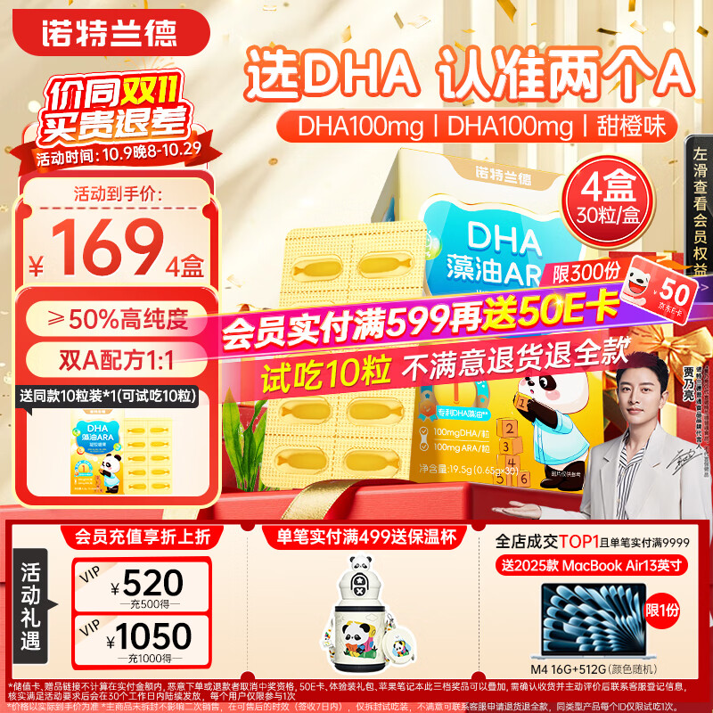 诺特兰德DHA藻油ARA儿童学生眼脑营养 50%高纯度双A配方 甜橙味 30粒*4盒