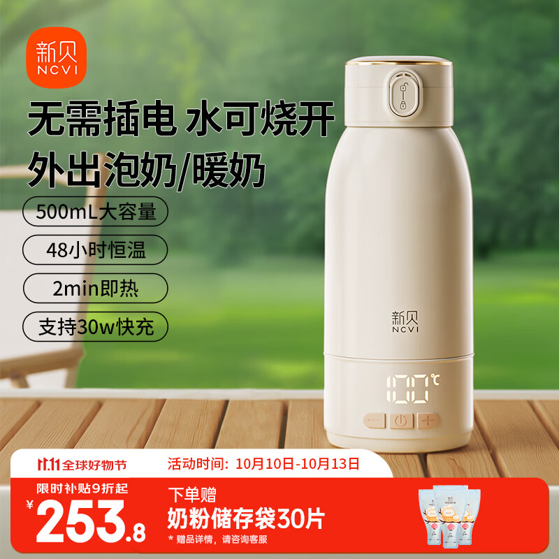 新贝恒温水壶 恒温壶婴儿冲奶 便携式热水壶 恒温杯保温杯烧水杯 8261