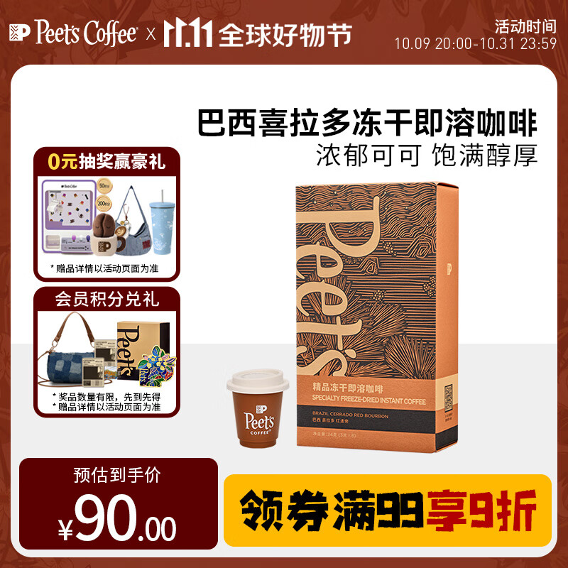Peet's Coffee皮爷peets 冻干即溶咖啡(巴西喜拉多红波旁)24g(3g*8颗)