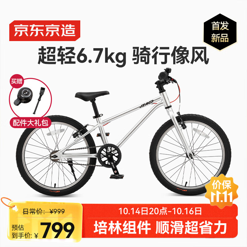 京东京造光羽超轻儿童自行车6-12岁京东自营山地自行车学生男女20寸逐光银