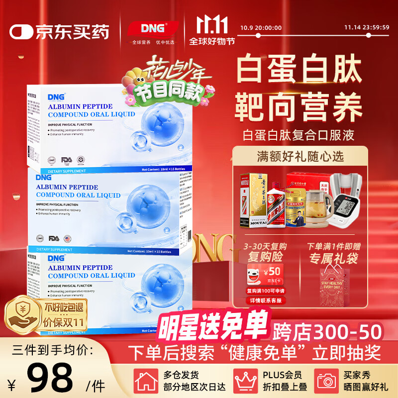 DNG进口白蛋白肽口服液氨基酸术后中老年放化疗恢复营养增强免疫3盒