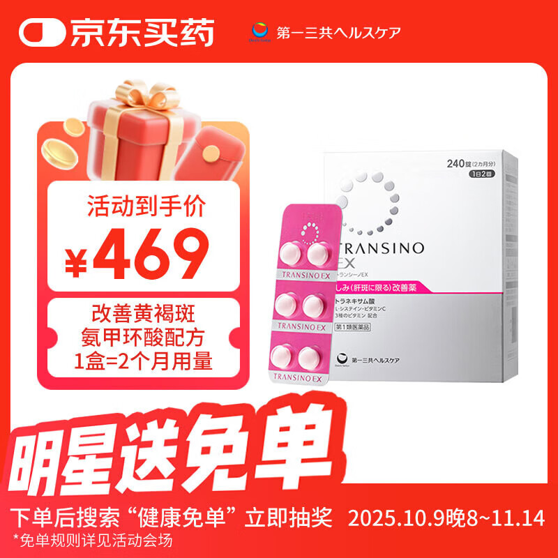 日本第一三共TRANSINO传皙诺EX肝斑美白丸240粒改善顽固色斑黄褐斑氨甲妥塞敏环酸片祛黑