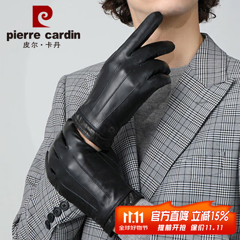 皮尔卡丹真皮手套男士【纯山羊皮】冬季加绒保暖户外防风可触屏手套