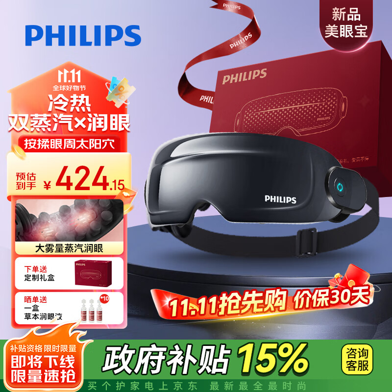 飞利浦(PHILIPS)美眼宝润眼仪【重磅新品】眼部护眼仪蒸汽眼罩热敷雾化按摩器送男友老公节日生日礼物5204E灰