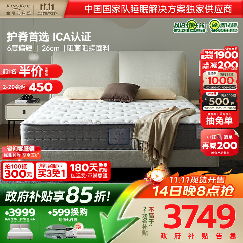 金可儿(Kingkoil)乳胶床垫三分区独立袋装弹簧席梦思床垫护脊2.0+偏硬1.8米*2米