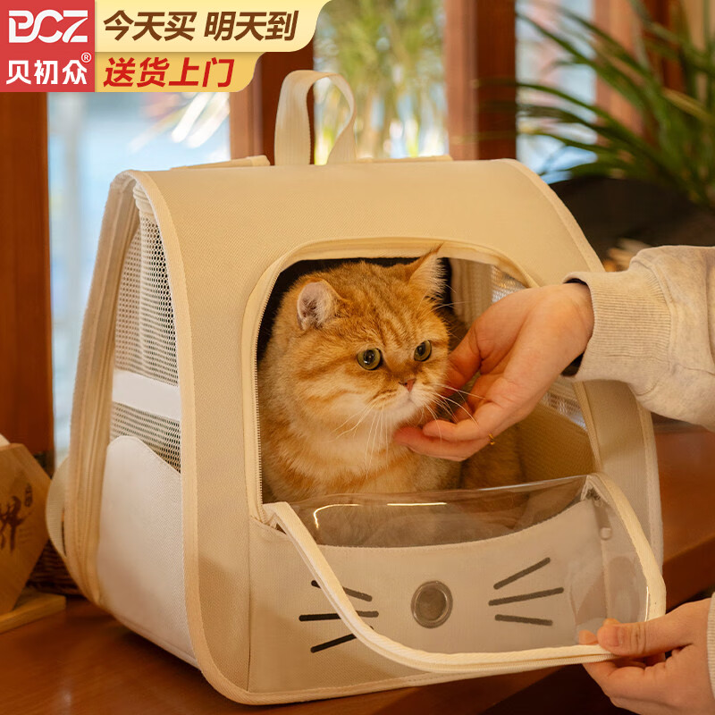 贝初众猫包外出便携包猫双肩背包猫咪太空舱猫包大号狗包宠物包航空箱 米白色【可容纳15斤肥猫】 【超大空间 轻便透气】