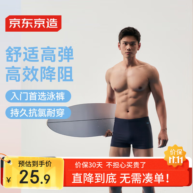 京东京造泳裤男弹力三分泳裤舒适平角泳装速干温泉男士游泳裤 藏蓝色XL