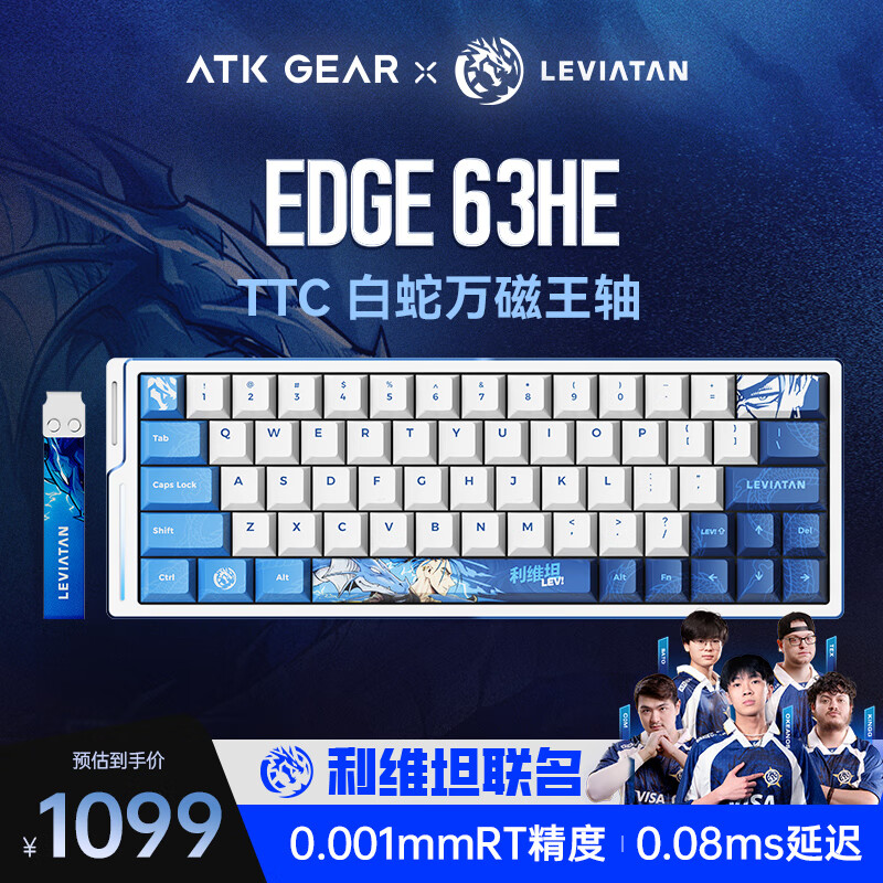 ATK LEV EDGE63 HE利维坦联名款电竞磁轴键盘客制化无畏契约 64键游戏机械键盘大师版TTC白蛇万磁王轴