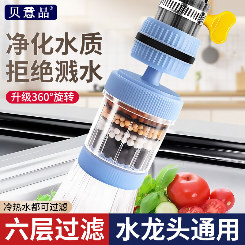 贝意品厨房水龙头过滤器家用净水器水龙头万向防溅接头延伸旋转水嘴神器
