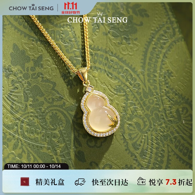 周大生竹报福禄葫芦玉髓项链纯银女国风新中式生日礼物送女友新款