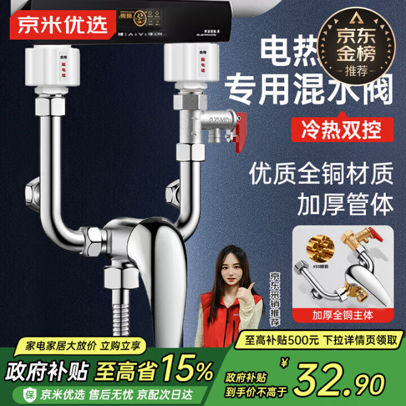 京米优选【国家补贴15%】电热水器混水阀龙头冷热调节U型淋浴混水阀配件