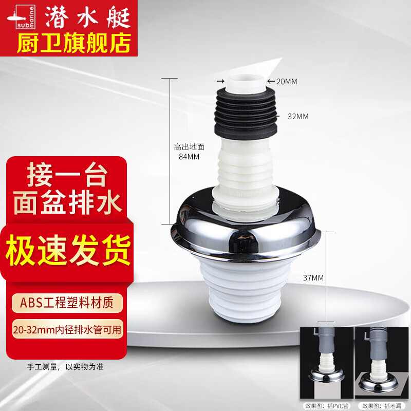 潜水艇(Submarine)洗衣机地漏下水三通二合一排水管下水管接头防臭防溢水返水密封盖 经典款【接1个面盆/拖把池用】