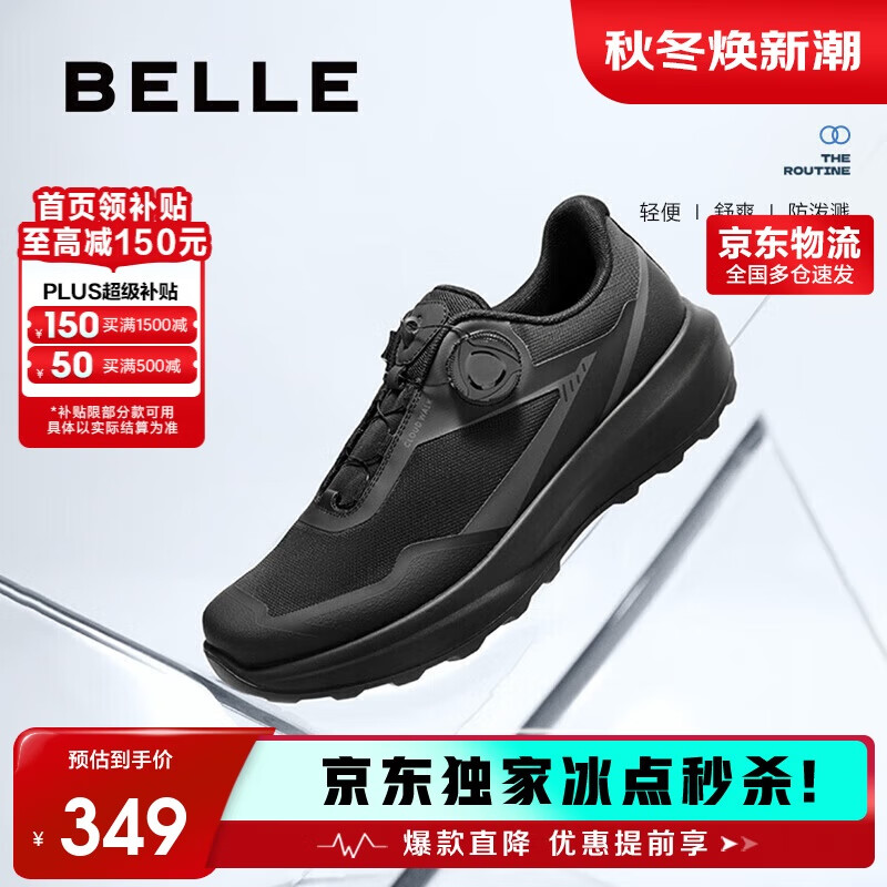 百丽厚底健步鞋男25秋旋钮扣防泼溅耐磨休闲运动鞋A2123CM5 烟晶黑 42