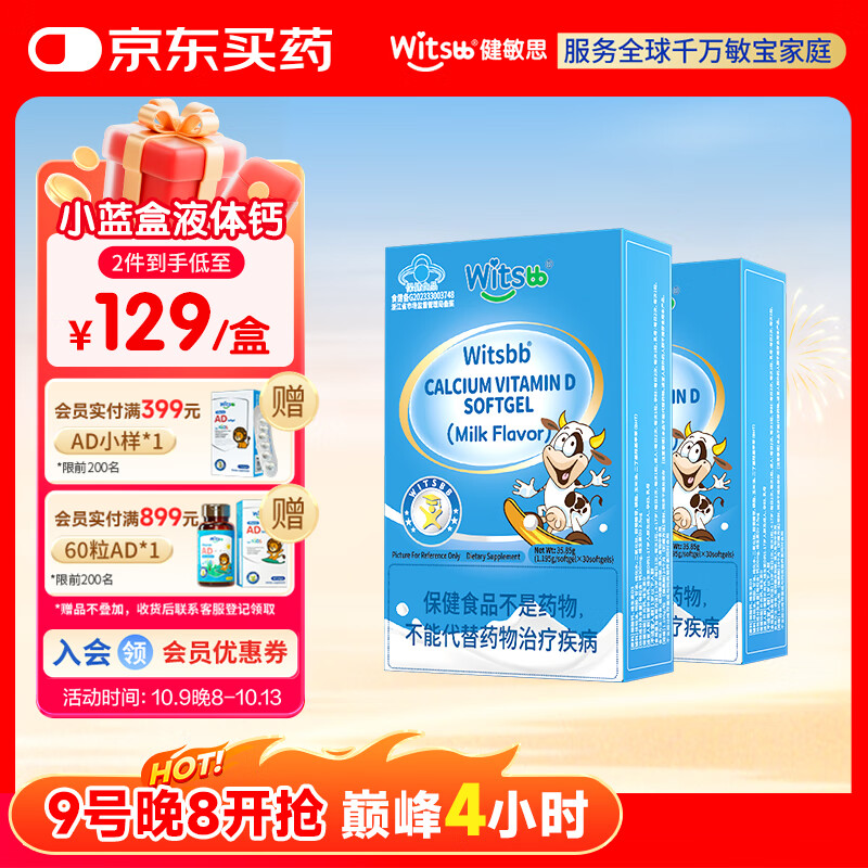 健敏思小蓝盒液体钙 高钙量300mg含维生素d3儿童钙 30粒/盒 【2盒装】液体钙(高钙含量)