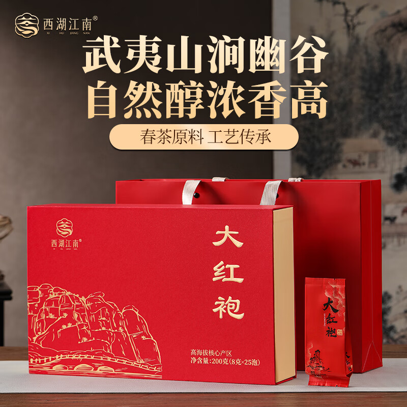 西湖江南乌龙茶茶叶大红袍礼盒装武夷正宗岩茶200g送礼品物长辈领导老师