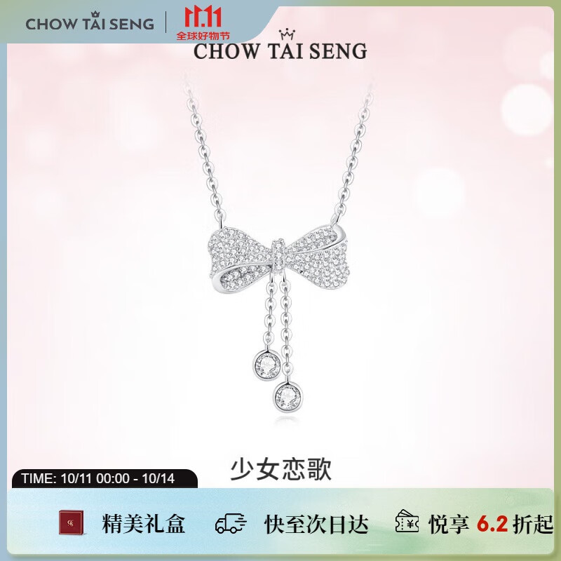 周大生流苏蝴蝶结银项链女S925锁骨链小众设计感生日礼物送女友