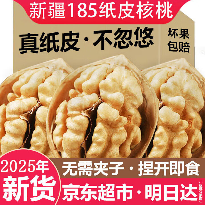瑾味緣纸皮核桃 新疆185阿克苏原味手剥核桃2025年新货特产孕妇坚果零食 新疆纸皮核桃5斤【手捏即开 】
