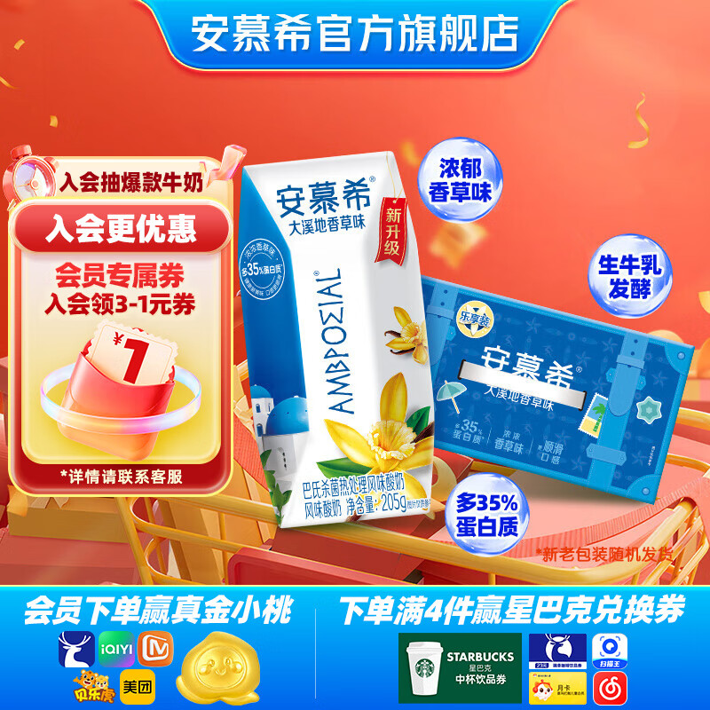 安慕希伊利常温香草风味酸奶整箱常温生牛乳牛奶乳品早餐礼盒装 大溪地香草205gx10盒x1箱