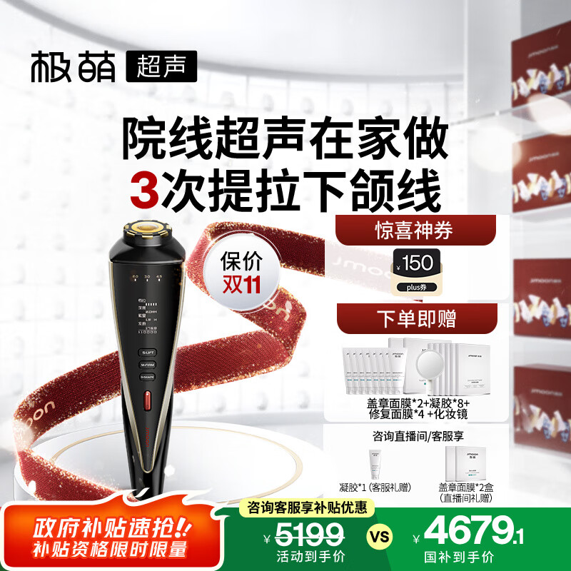 极萌政府补贴10%-超声炮美容仪分层【抗衰抗皱瘦脸】提拉胶原促生熬夜急救化妆镜礼物价保双11