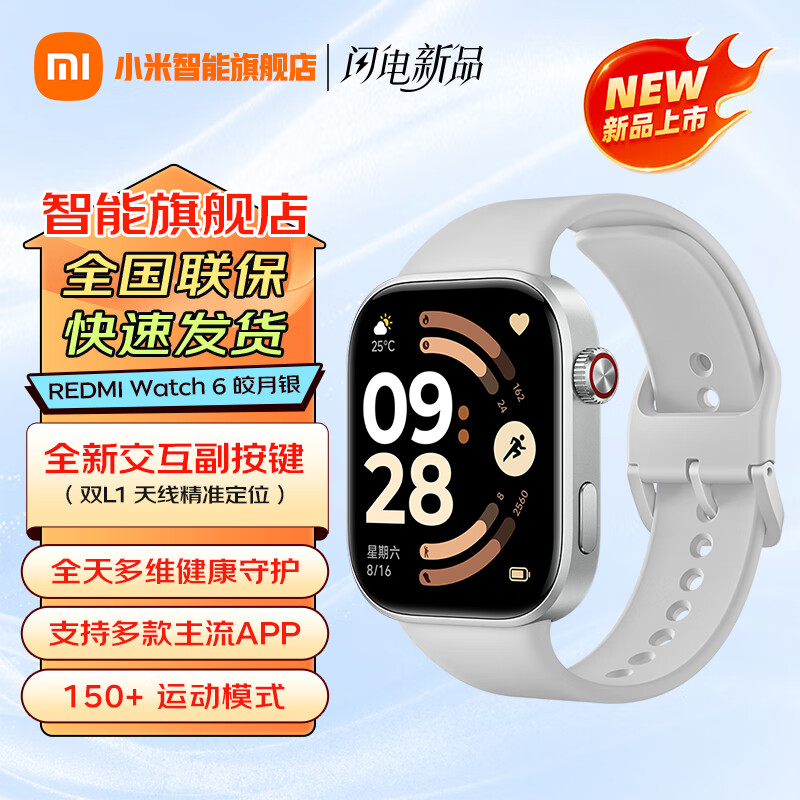 小米(MI)REDMI Watch 6 澎湃OS 3 心率血氧监测 蓝牙通话 红米手表6 智能手表 小米汽车 REDMI Watch 6 皎月银