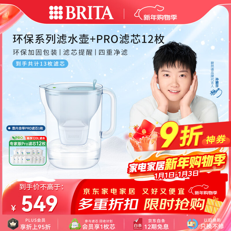 碧然德【新款上市】家用滤水壶 净水壶 Style eco系列 3.5L(冰川蓝)+PRO版滤芯12枚 环保加固包装