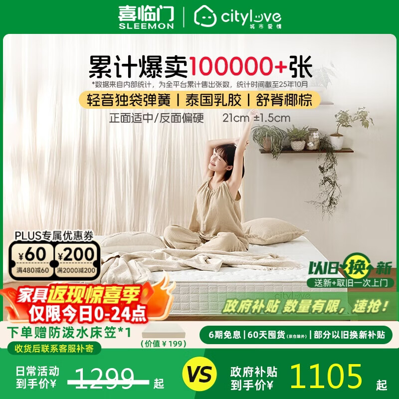 城市爱情喜临门床垫子乳胶独袋弹簧床垫双面席梦思 大白 1.8x2米 软硬双面