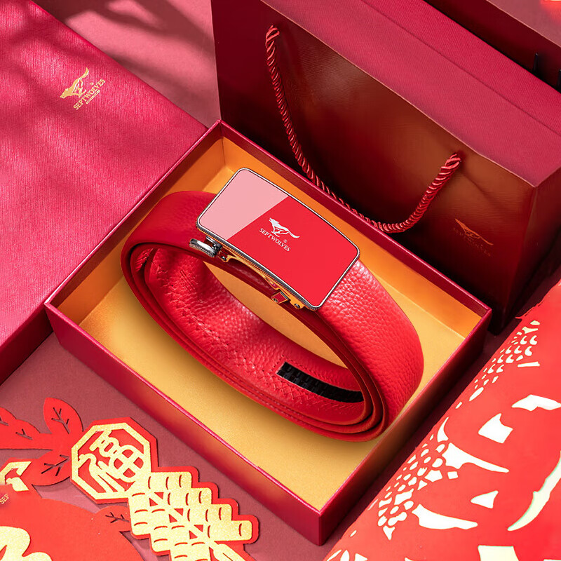 七匹狼皮腰带本命年红腰带牛皮带内穿送男友长辈结婚跨马年实用礼物