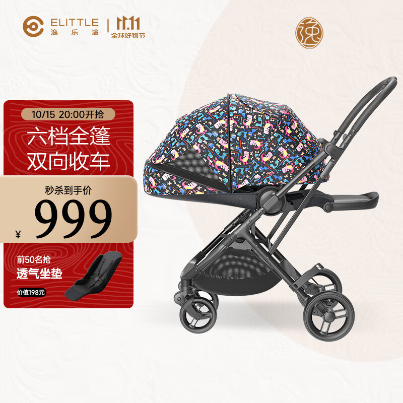 elittile逸乐途婴儿车0-3岁折叠可坐可躺双向高景观推车Dream5代小恐龙