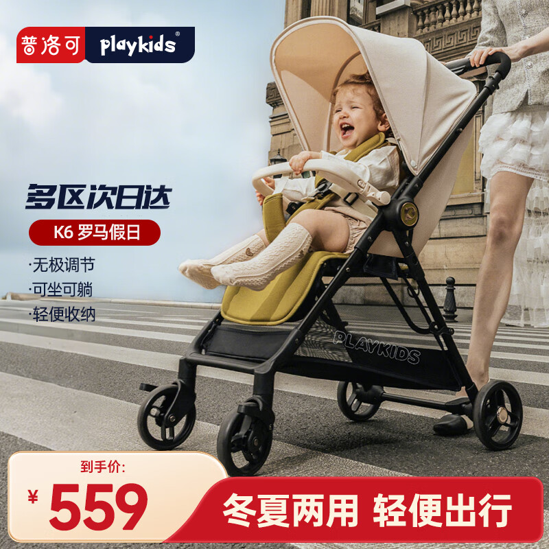 普洛可(PLAYKIDS)K6口袋推车可坐可躺婴儿推车新生儿轻便双向四轮推车婴儿车