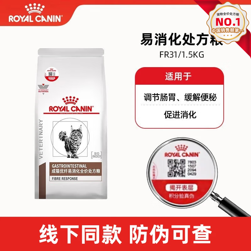 皇家FR31 优纤易消化处方猫粮促进肠道蠕动缓解便秘肠道消化支持 优纤易消化处方猫粮 1.5kg