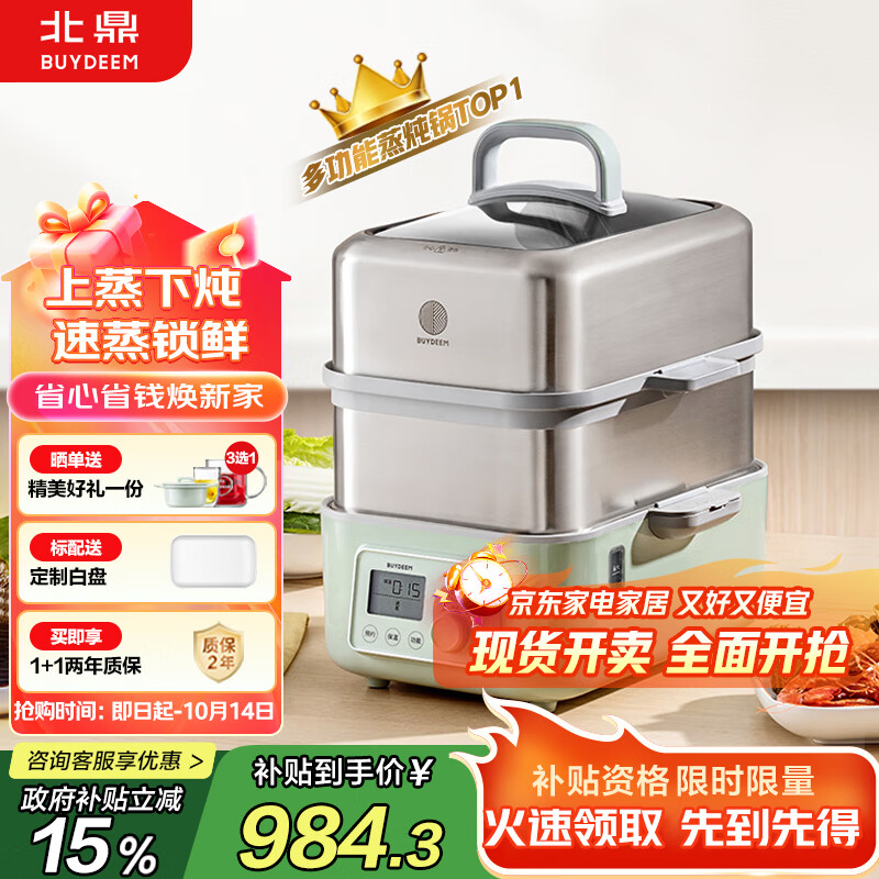 北鼎(Buydeem)电蒸锅蒸锅多功能锅蒸炖煮一体双层定时保温家用大容量二层婴儿适用自动免看火 厨房好物G5541