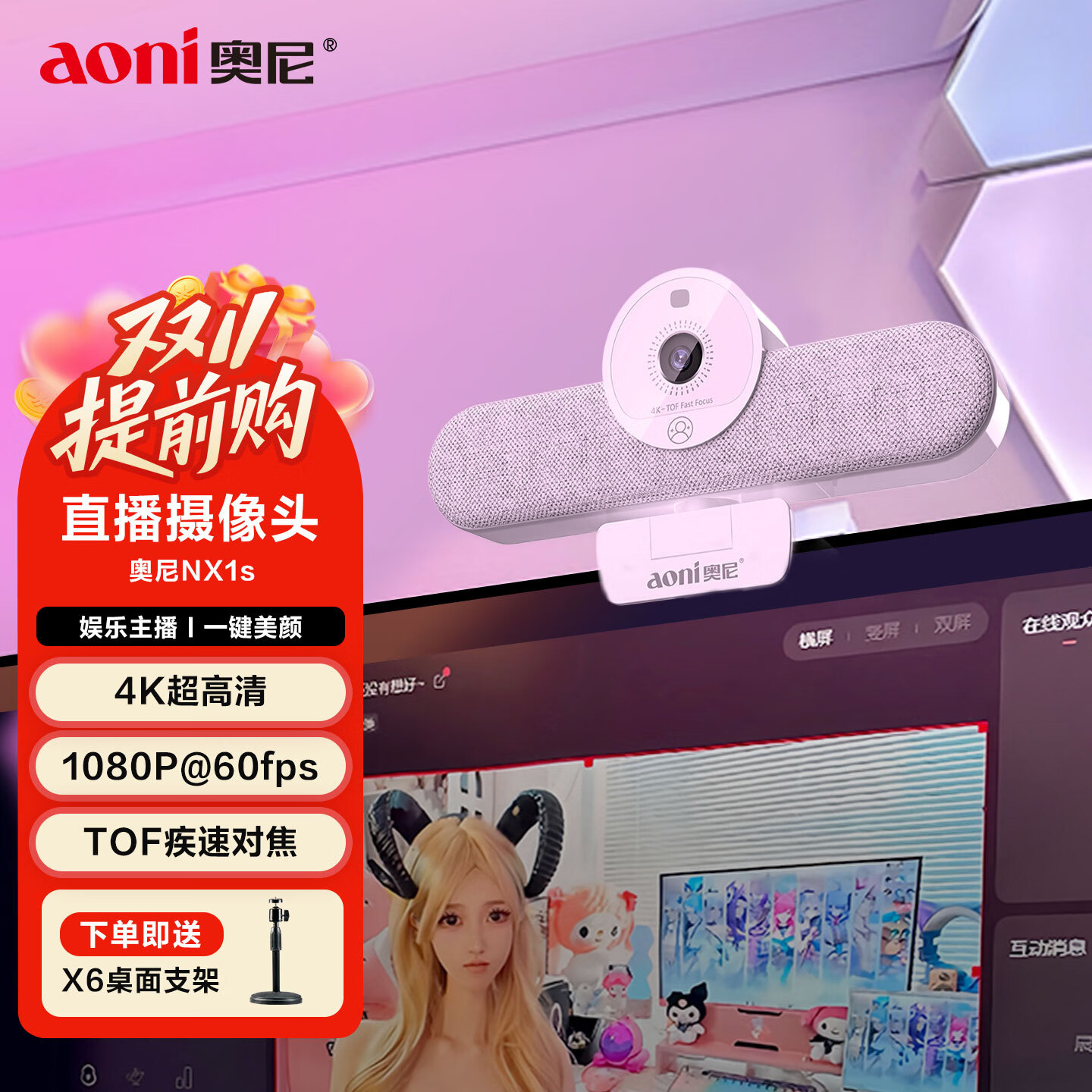 奥尼(aoni)直播摄像头 一键美颜 4K超高清电脑摄像头广角疾速自动对焦带降噪麦 笔记本台式机视频通话 NX1s