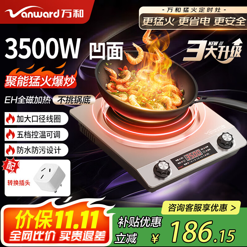万和凹面电磁炉家用大功率电磁灶电炒炉电炉灶商用火锅灶炒菜猛火爆炒预约定时 WZ-CL350-X2