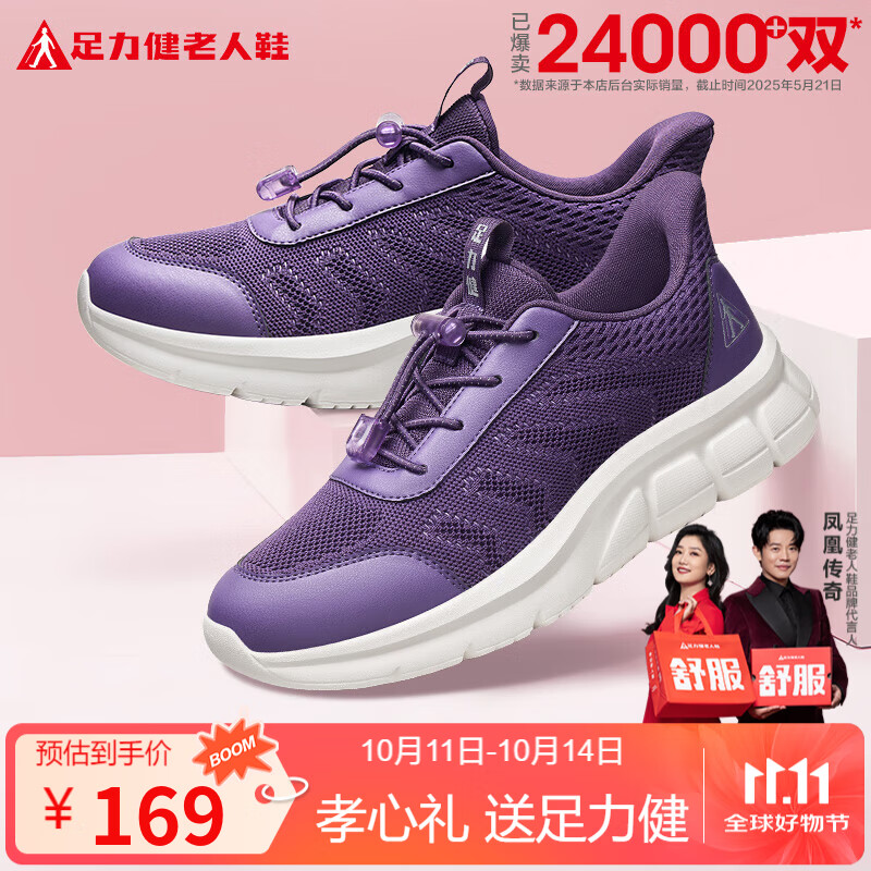 足力健老人鞋中老年春秋季健步轻便软底送妈妈休闲散步鞋2431369J 紫-女 38