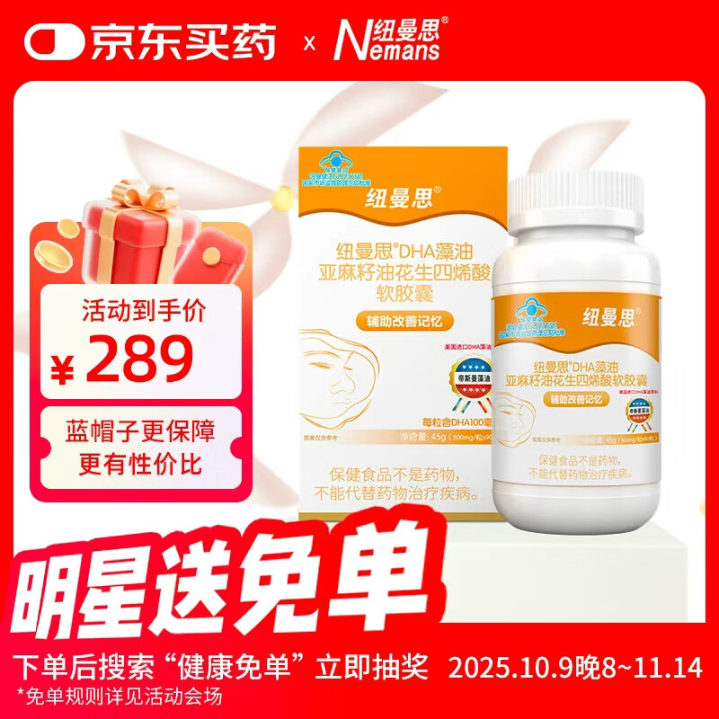 纽曼思健字号藻油DHA90粒 辅助改善记忆 —少年儿童推荐食用