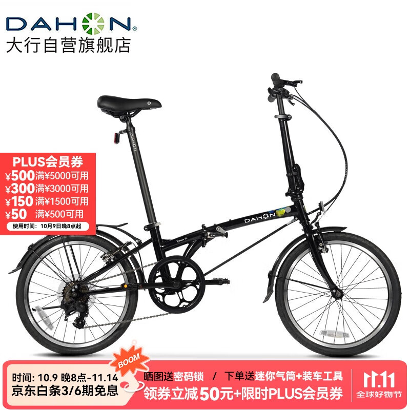大行(DAHON)折叠自行车20英寸超轻6速通勤折叠单车HAT061 黑色