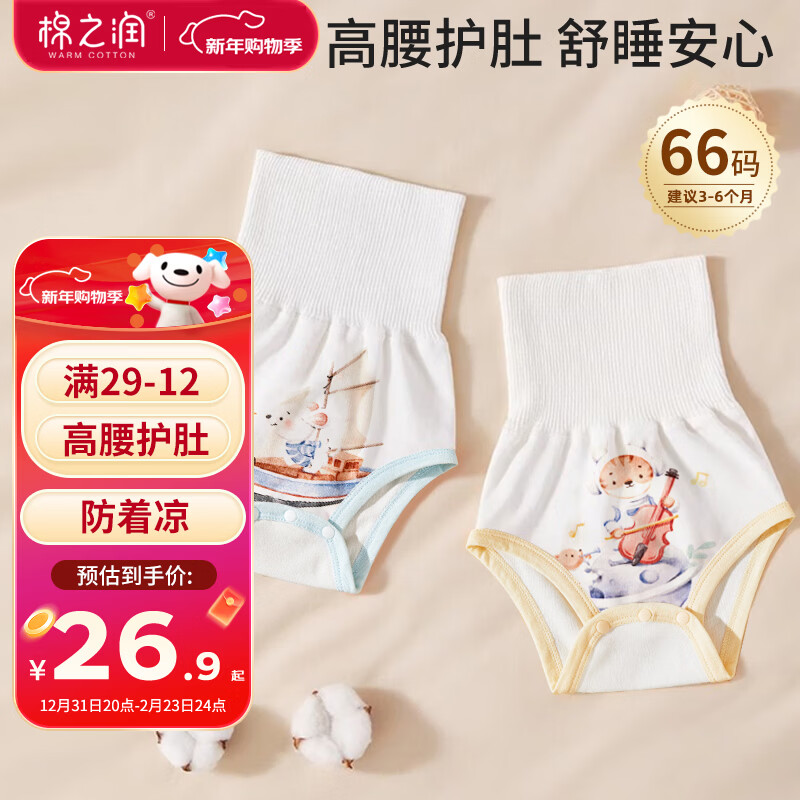 棉之润婴儿肚围新生儿高腰纯棉肚兜双层护肚护脐带宝宝防着凉2条66码