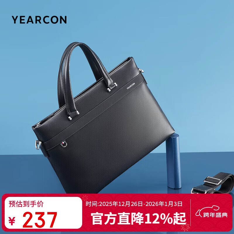 意尔康单肩斜挎大容量电脑包商务公文包男士手提包黑色跨年元旦节礼物