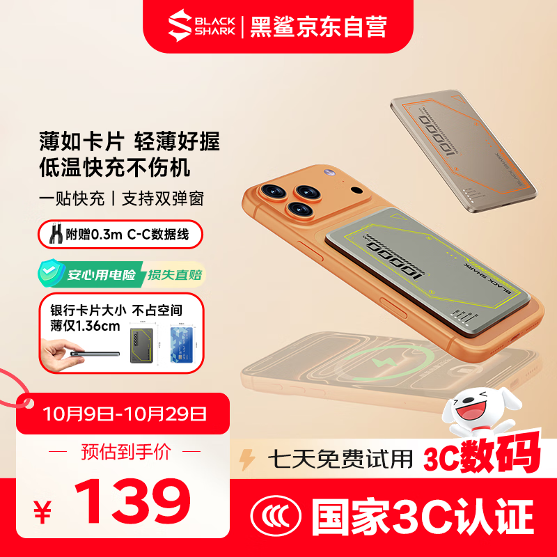 黑鲨【3C认证可上飞机】 刀锋2苹果磁吸无线充电宝支持MagSafe快充20W超薄10000毫安时适用iPhone17/16