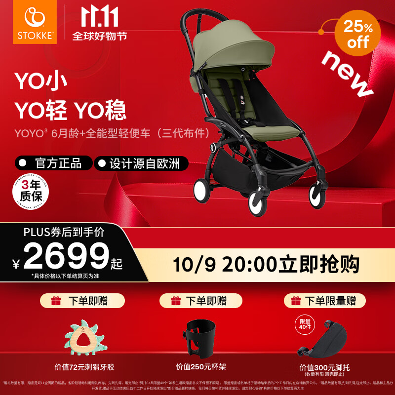 Stokke全能型轻便车遛娃神器婴儿推车 yoyo3 6+橄榄绿 三代布件